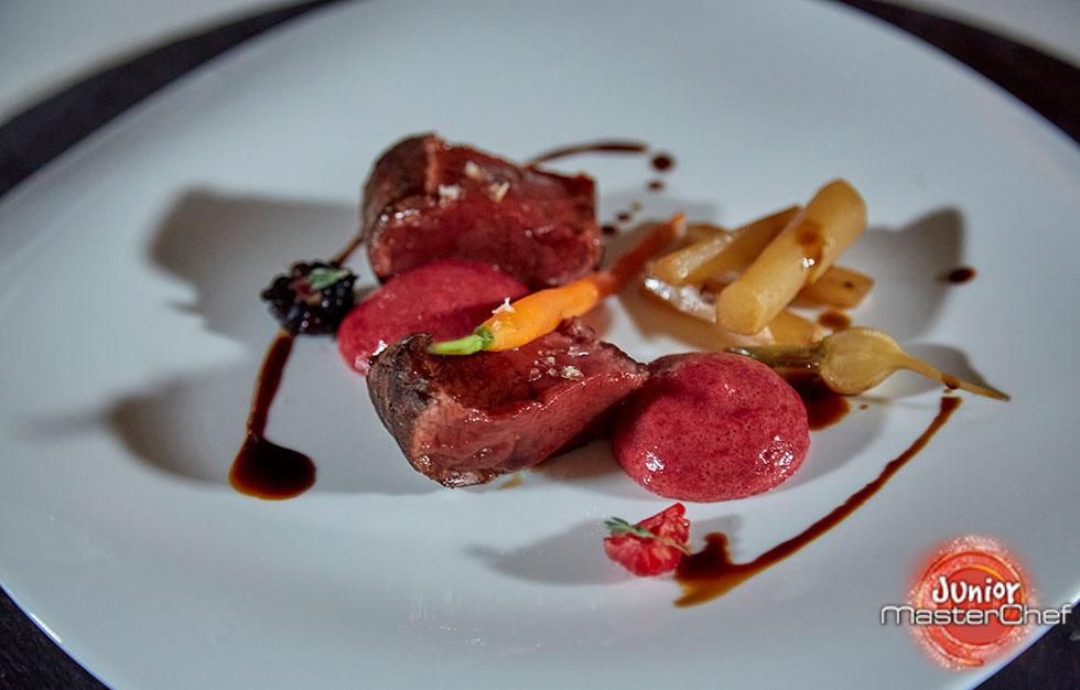 Roast-beef de corzo con frutas del bosque y ali-oli de mango